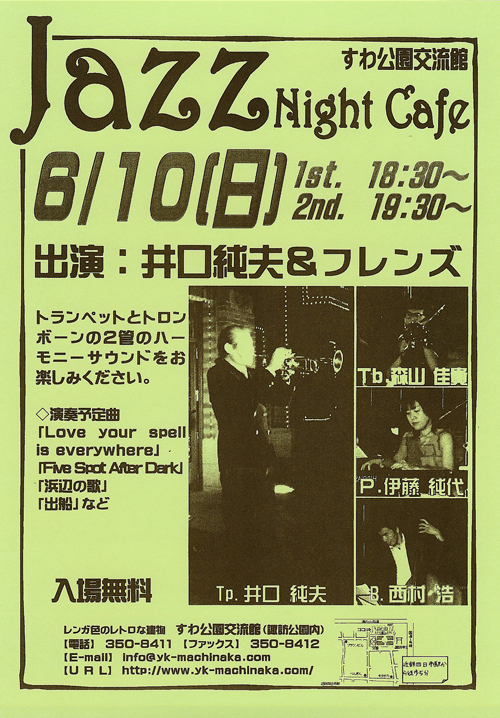 10日(日) 18 : 30 諏訪公園 交流館ライブ「jazz night cafe」