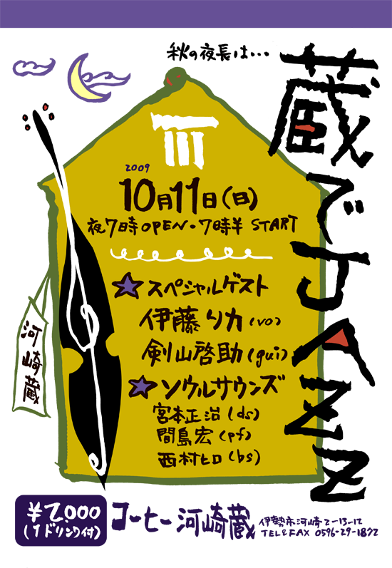11日(日) 19 : 30 伊勢ライブ決定。「コーヒー河崎蔵」