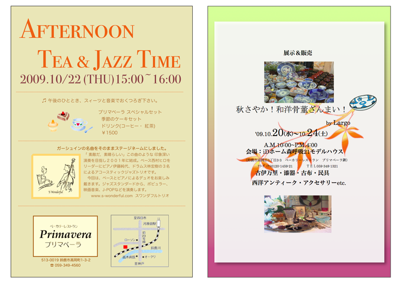 鈴鹿のベーカリーレストラン「プリマベーラ」が、アフタヌーンイベントを行います。