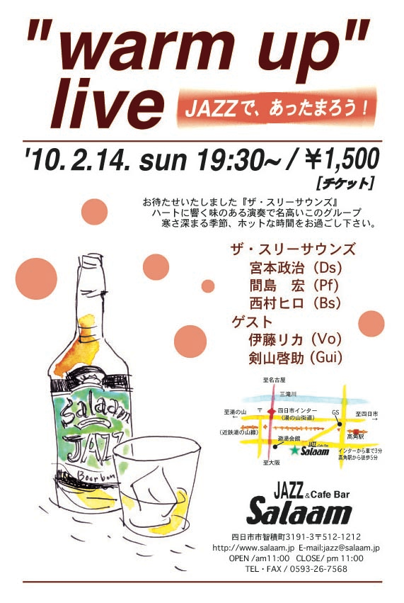 14日(日) 19 : 30 四日市、サラーム「スリーサウンズ+ゲストライブ」