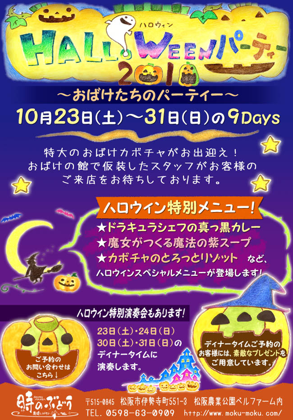 30日(土) 18 : 00 モクモク松阪店「時のぶどう」ハロウィン演奏会に出演