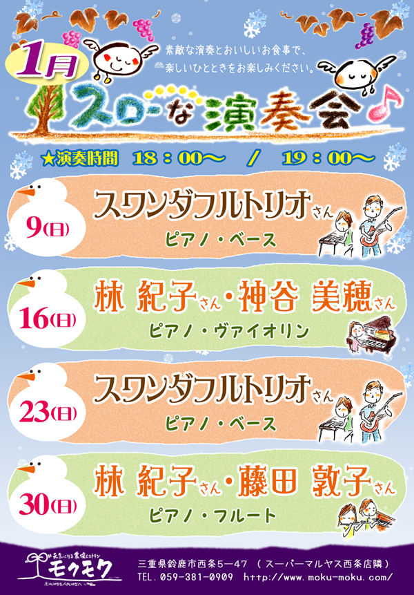 23日(日) 18 : 00 モクモク鈴鹿スローな演奏会に出演