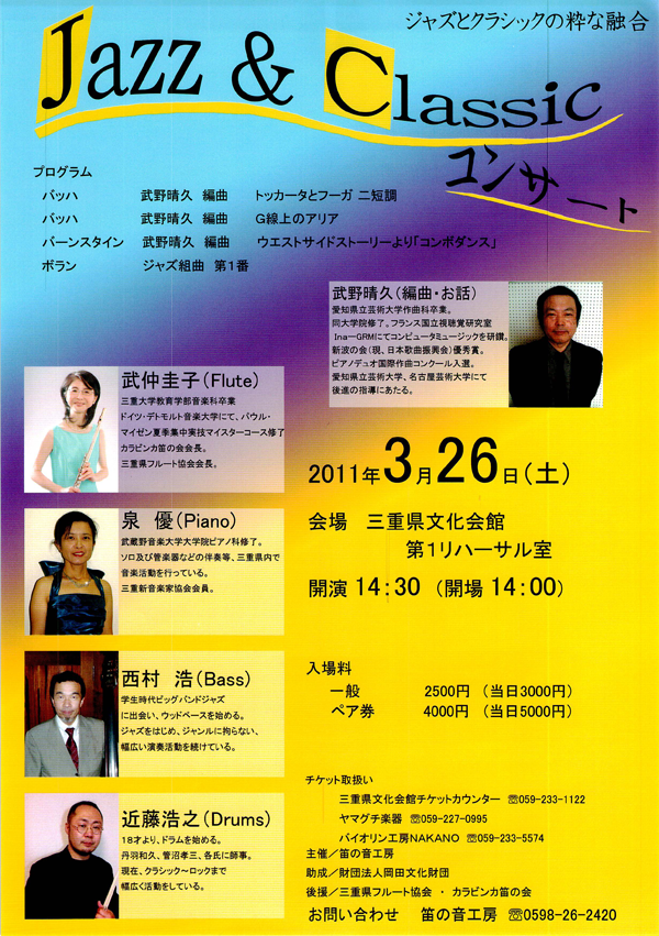 武仲圭子(fl).泉 優(pf).西村ヒロ(bs).近藤浩之(ds)