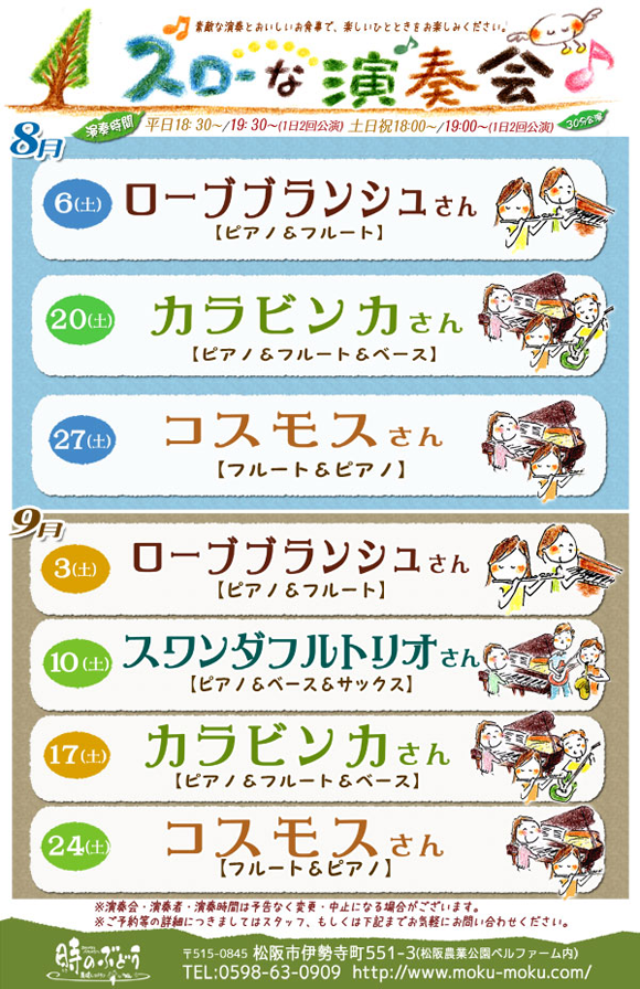 17日(土) 18 : 00 モクモク松阪店「時のぶどう」スローな演奏会に出演(カラビンカ)