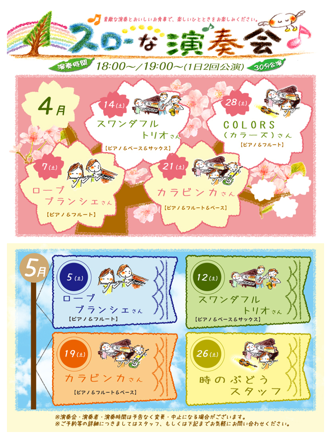 19日(土) 18 : 00 モクモク松阪「時のぶどう」スローな演奏会