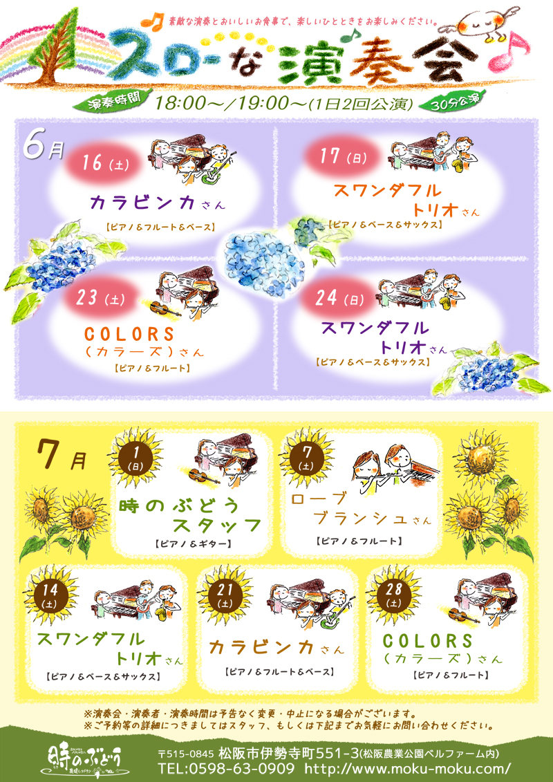 21日(土) 18 : 00 モクモク松阪「時のぶどう」スローな演奏会(クラシック音楽ユニット「カラビンカ」)