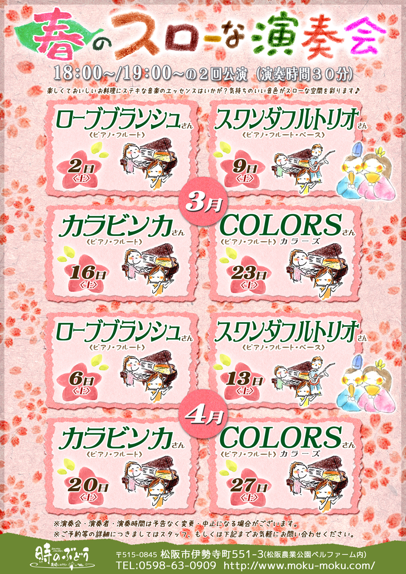 20日(土) 18 : 00 モクモク松阪「時のぶどう」スローな演奏会
