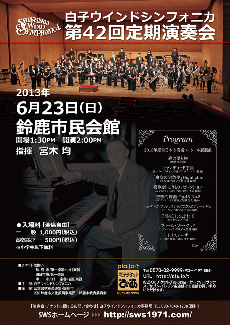 23日(日) 14 : 00 白子ウインドシンフォニカ定第42回定期演奏会