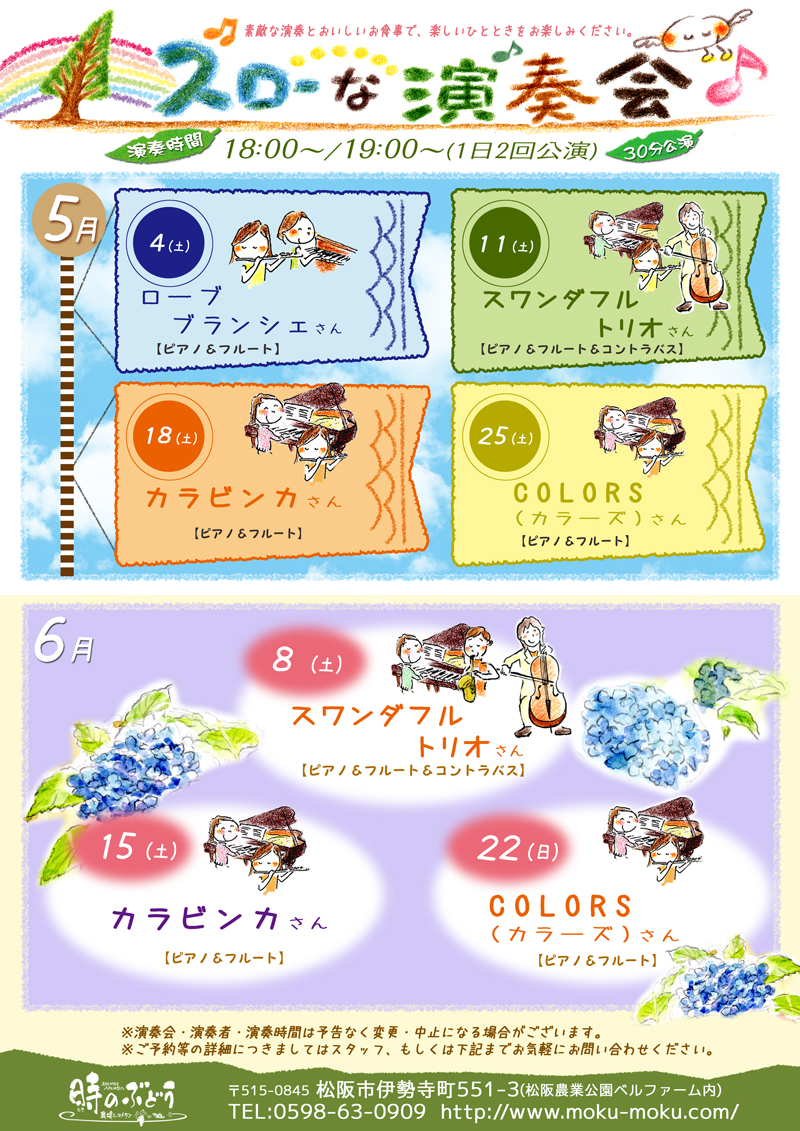 13日(土) 18 : 00 モクモク松阪「時のぶどう」スローな演奏会 カラビンカ