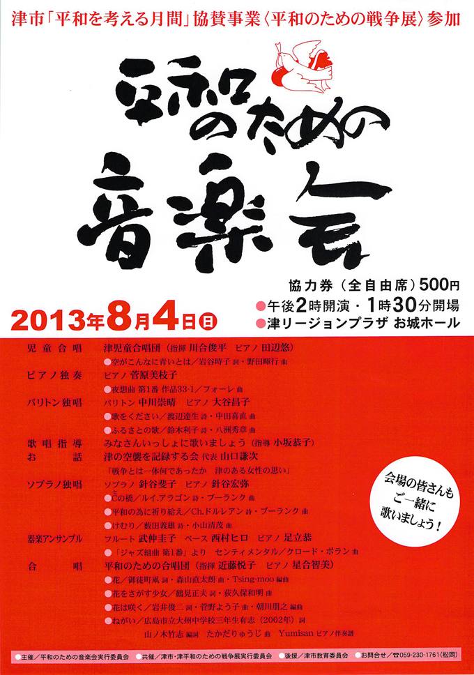 4日(日) 14 : 00 平和のための音楽会 津リージョンプラザお城ホール