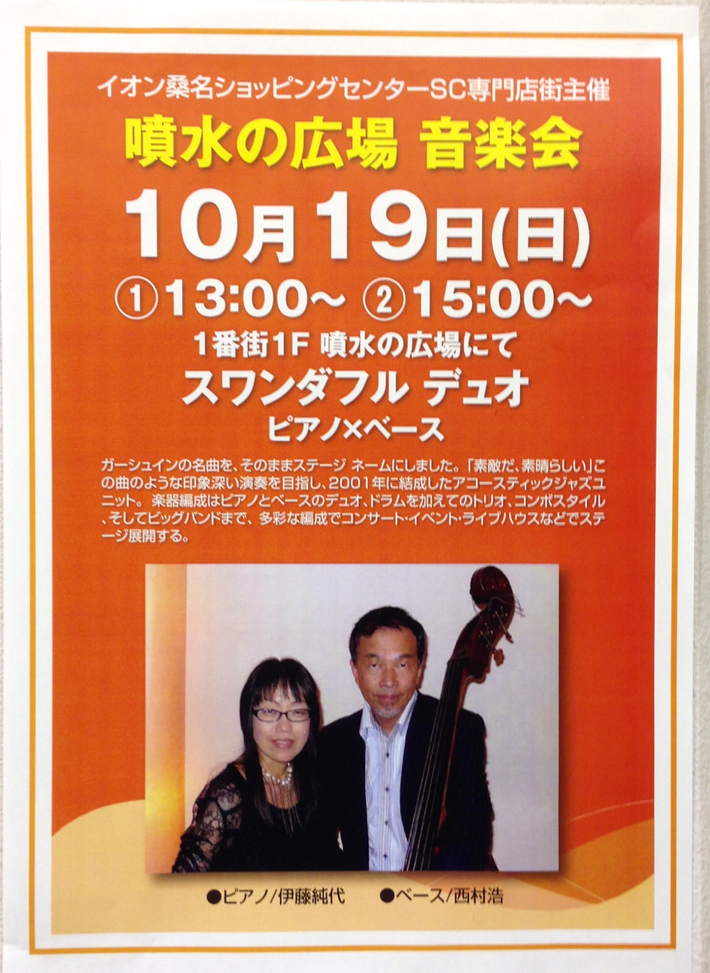 19日(日) 13 : 00 イオン桑名で演奏します。スワンダフルデュオ