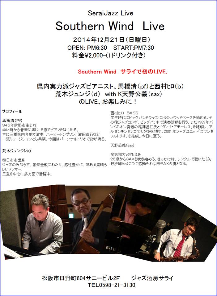 21日(日) 19 : 30 松阪サライライブ「サザンウィンド」