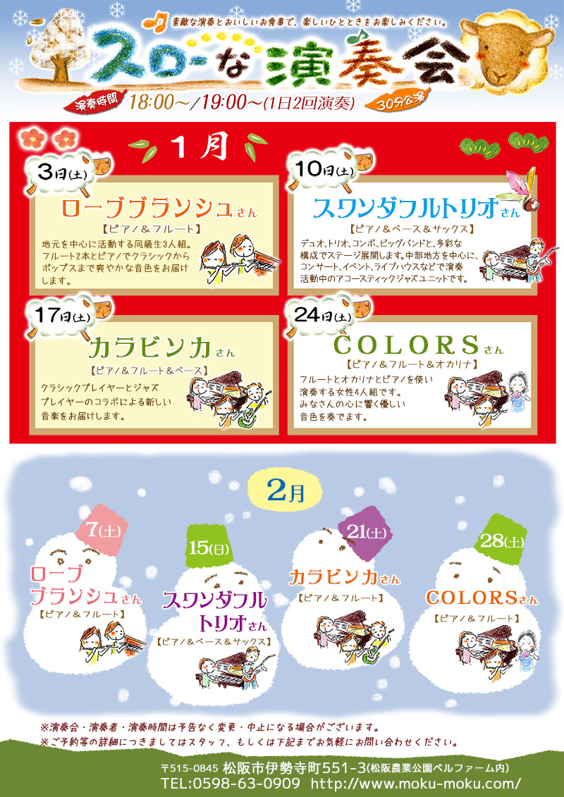 15日(日) 18 : 00 モクモク松阪「時のぶどう」スローな演奏会 スワンダフルトリミックスベリージャズトリオ