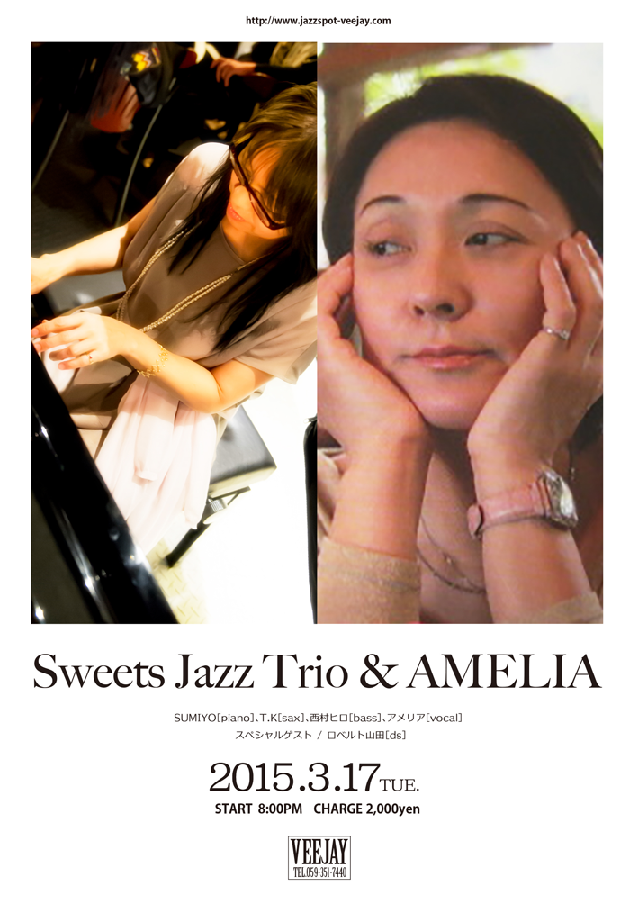 17日(火) 20 : 00 四日市ビージェイライブ Sweets Jazz Trio & AMERIA