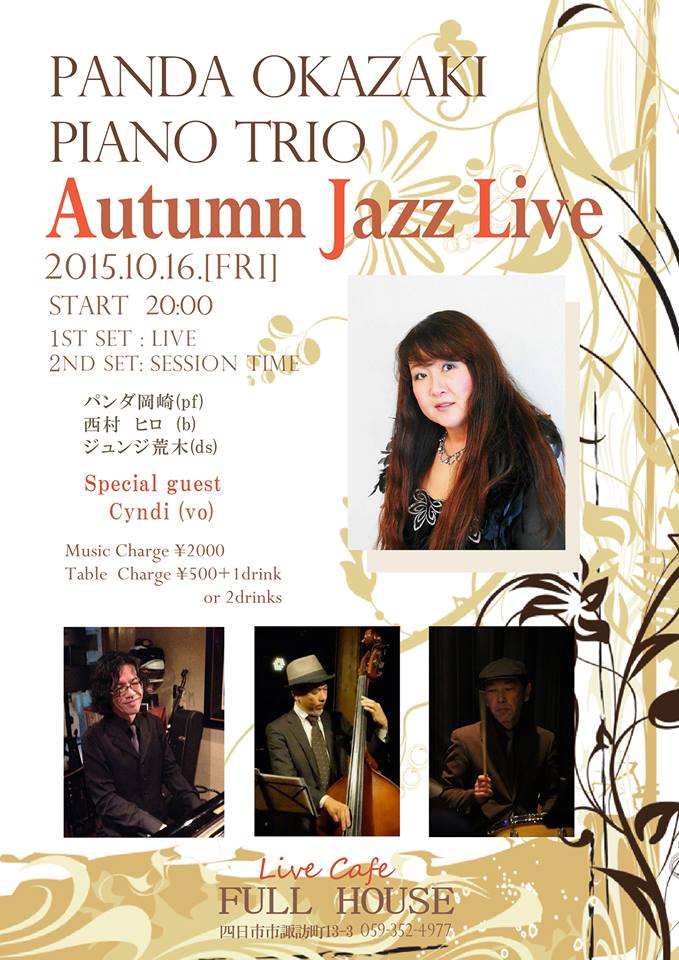16日(金) 20 : 00 パンダ岡崎ピアノトリオ+ボーカル(四日市フルハウス)