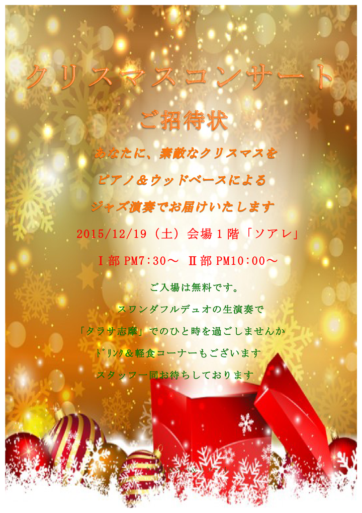 19日(土) 19 : 00 タラサ志摩 ホテル&リゾート「クリスマスライブ」