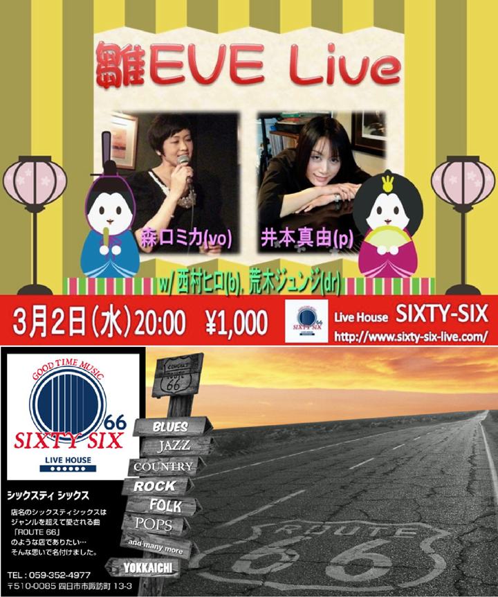 2日(水) 20 : 00 雛EVE LIVE 四日市シックスティシックス