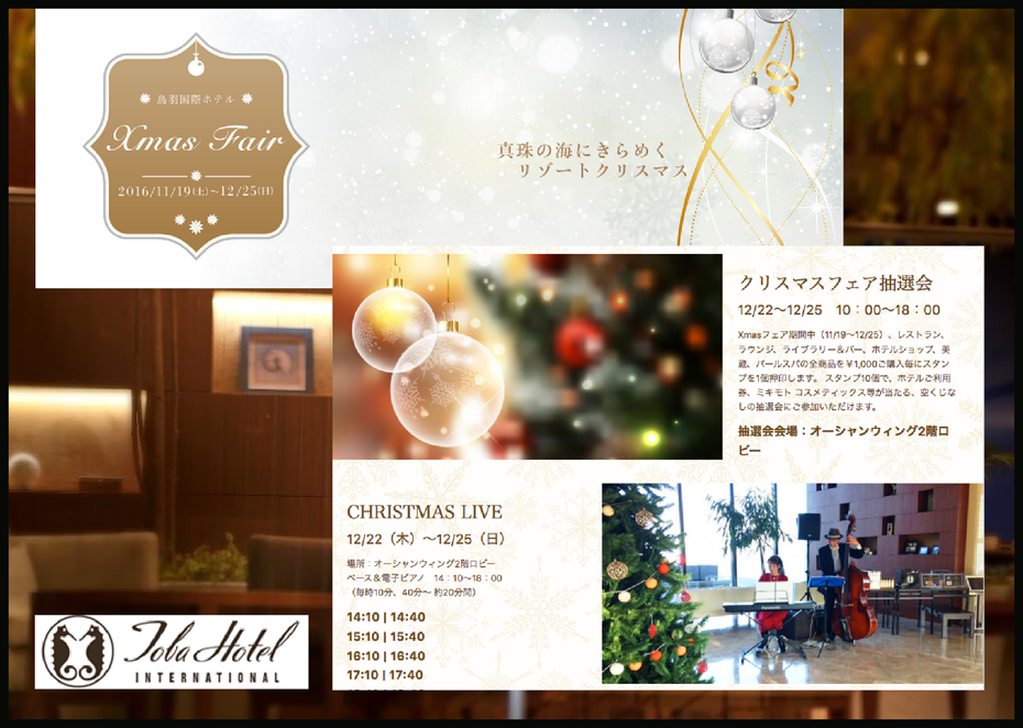 25日(日) 14 : 00 鳥羽国際ホテル、クリスマスウェルカムJazz生演奏