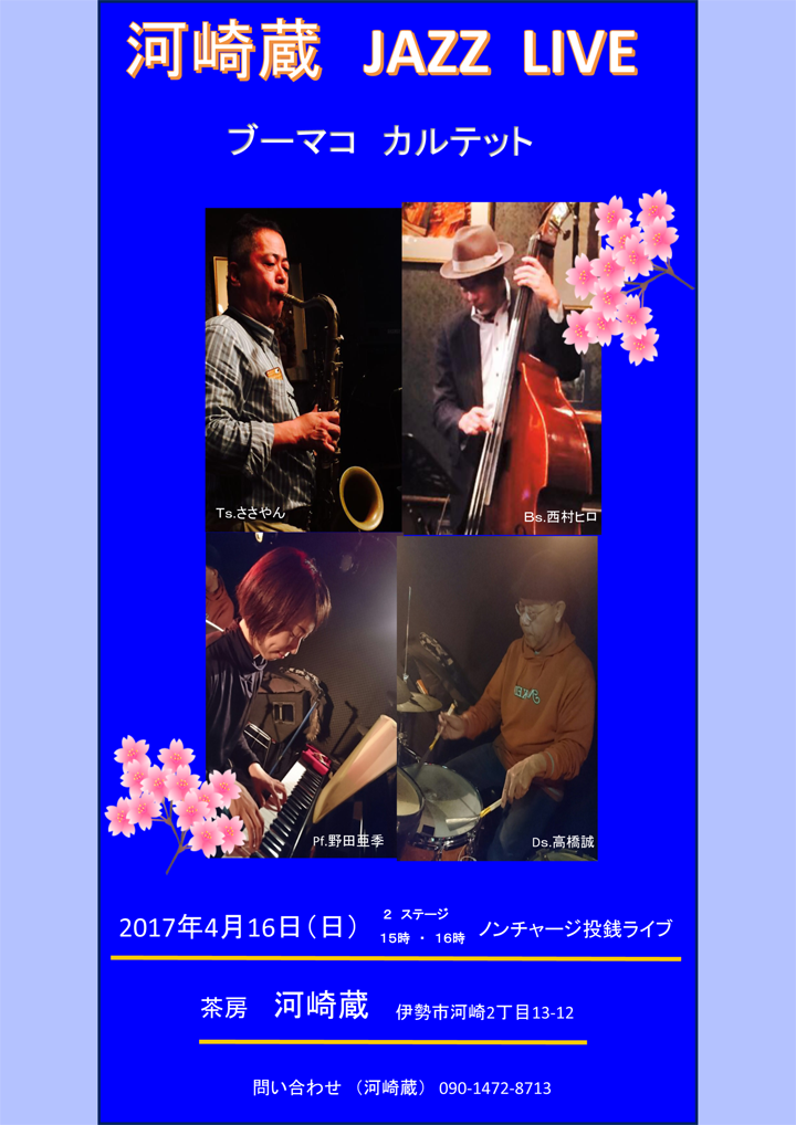 16日(日) 15 : 00 伊勢河崎蔵ジャズライブ