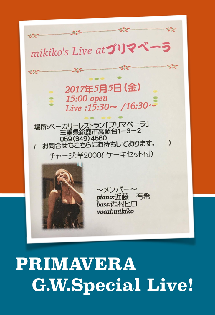 5日(金) 15 : 30 鈴鹿プリマベーラ「ミキコジャズライブ」