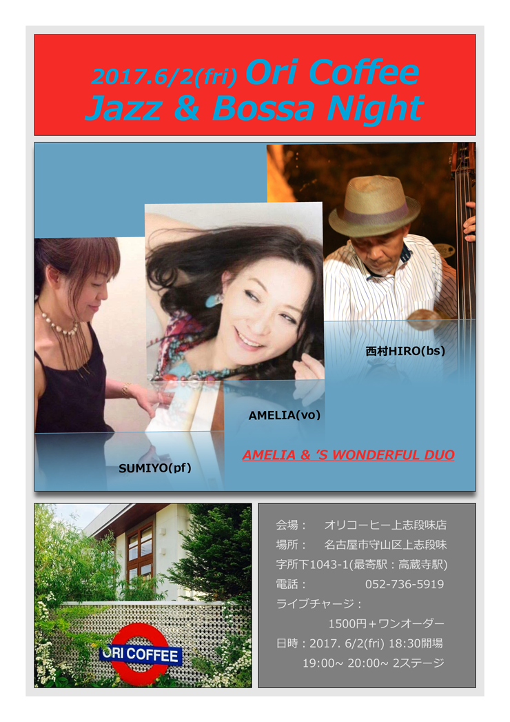 ORI COFFEE 上志段味店 「AMELIA & 'S WONDERFUL DUO」 JAZZ&BOSSA NIGHT