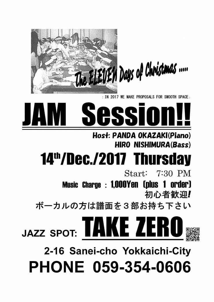 14日(木) 19 : 30 四日市 TAKE ZERO JAM SESSION !