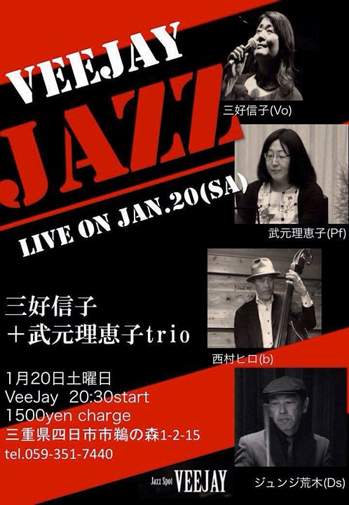 20日(土) 20 : 00 四日市ビージェイライブ「三好信子&武元理恵子トリオ」