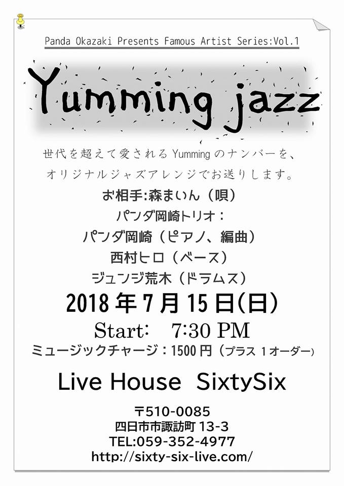 15日(日) 19 : 00 四日市シックスティシックスLIVE 「Yumming Jazz」