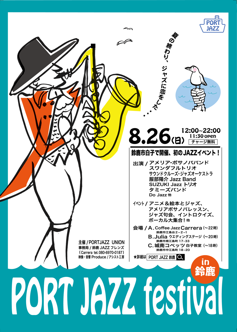 26日(日) 12 : 00 「PORT JAZZ festival in 鈴鹿」2018年8月26日12:00~22:00 白子3会場で開催!