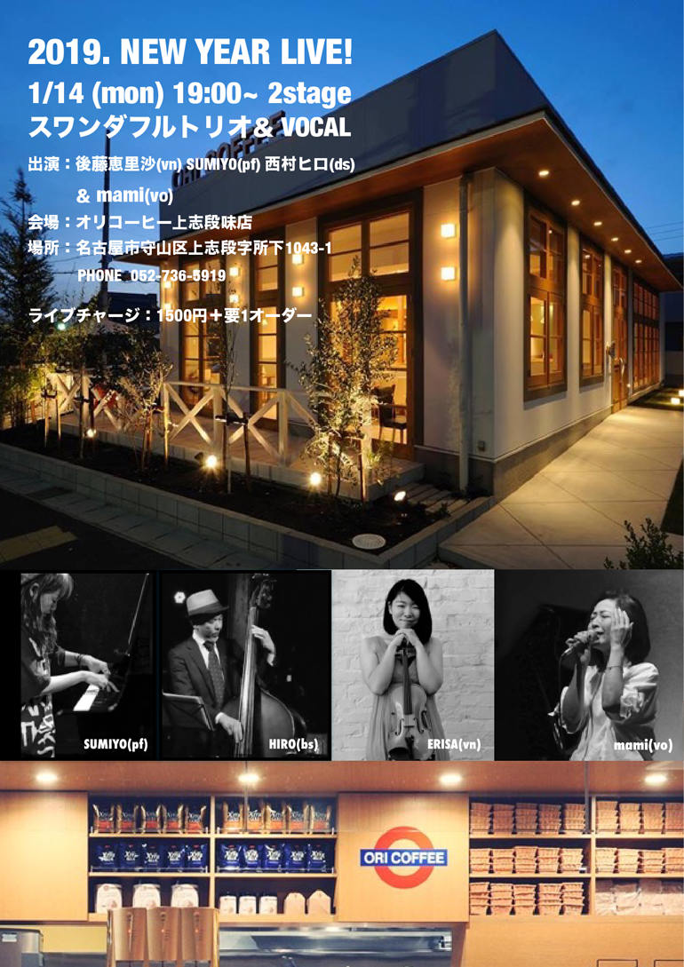 14日(月) 19 : 00 名古屋守山区オリコーヒージャズライブ「スワンダフルトリオ&ボーカル」