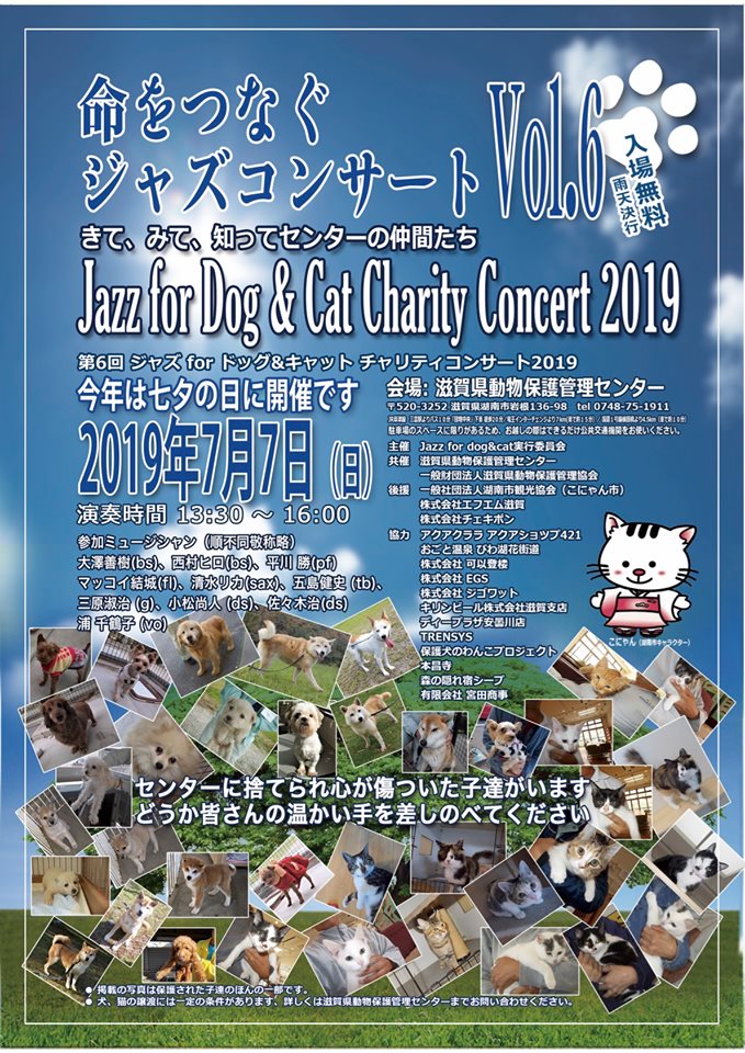 7日(日) 13 : 00 命をつなぐジャズコンサートVol.6 滋賀県動物保護管理センター