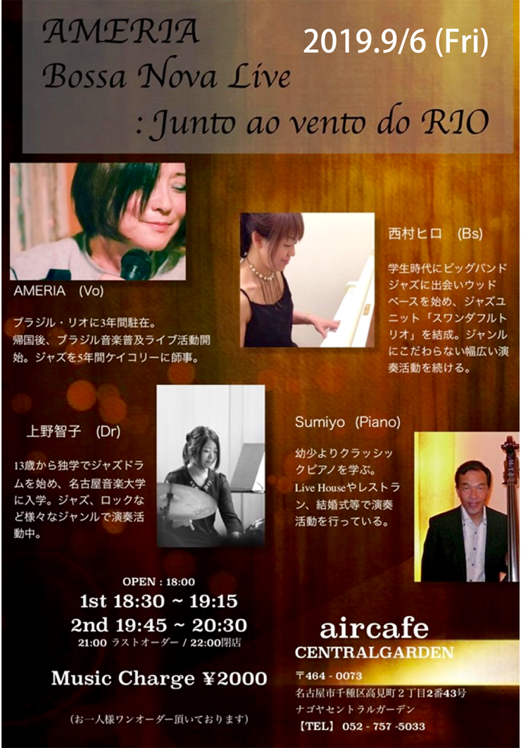 6日(金) 18 : 30 名古屋池下aircafe CENTRALGARDEN アメリアボサノババンド